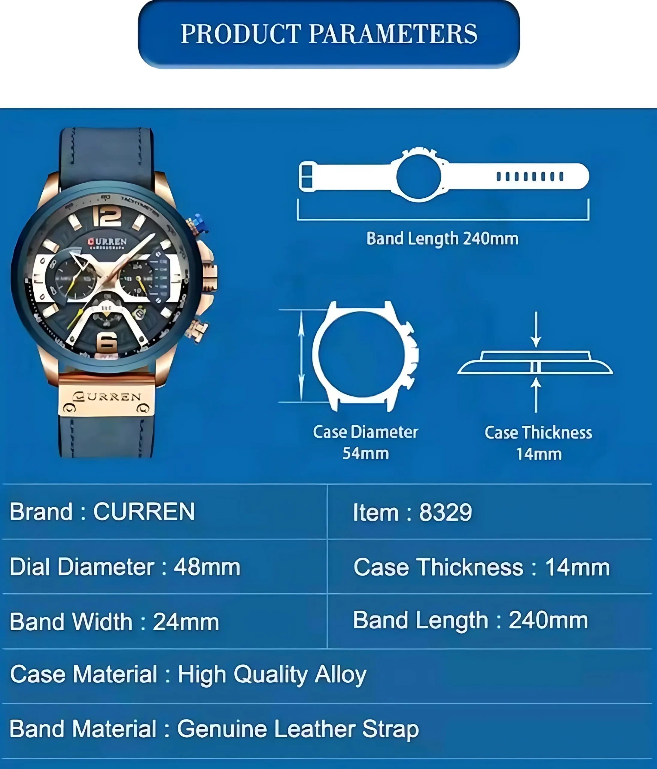 – Band Material: Genuine Leather Strap