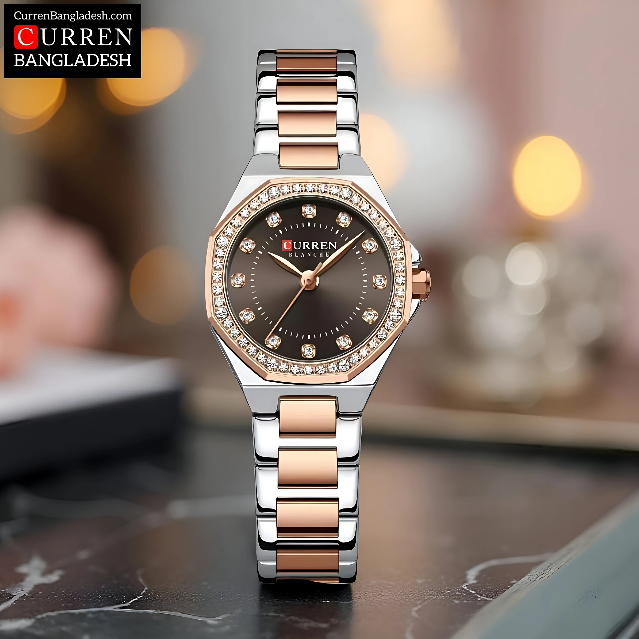 This elegant timepiece from curren Bangladesh is designed to complement the modern woman’s style with grace and precision.