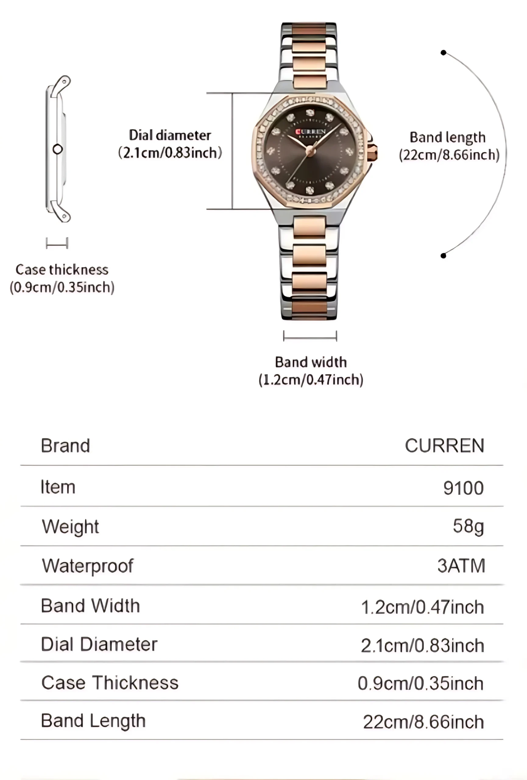 – Dial Diameter: 2.1cm / 0.83 inch